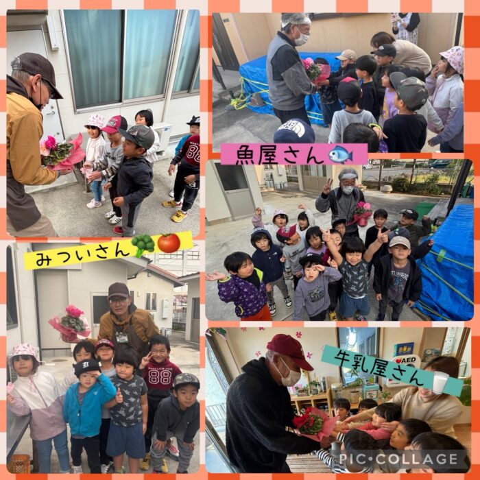 そして、いつもみんなが給食で食べているお野菜🥕🧅魚🐟牛乳🥛などを配達してくださる方々にも、お花と感謝の気持ちを伝えました☺️