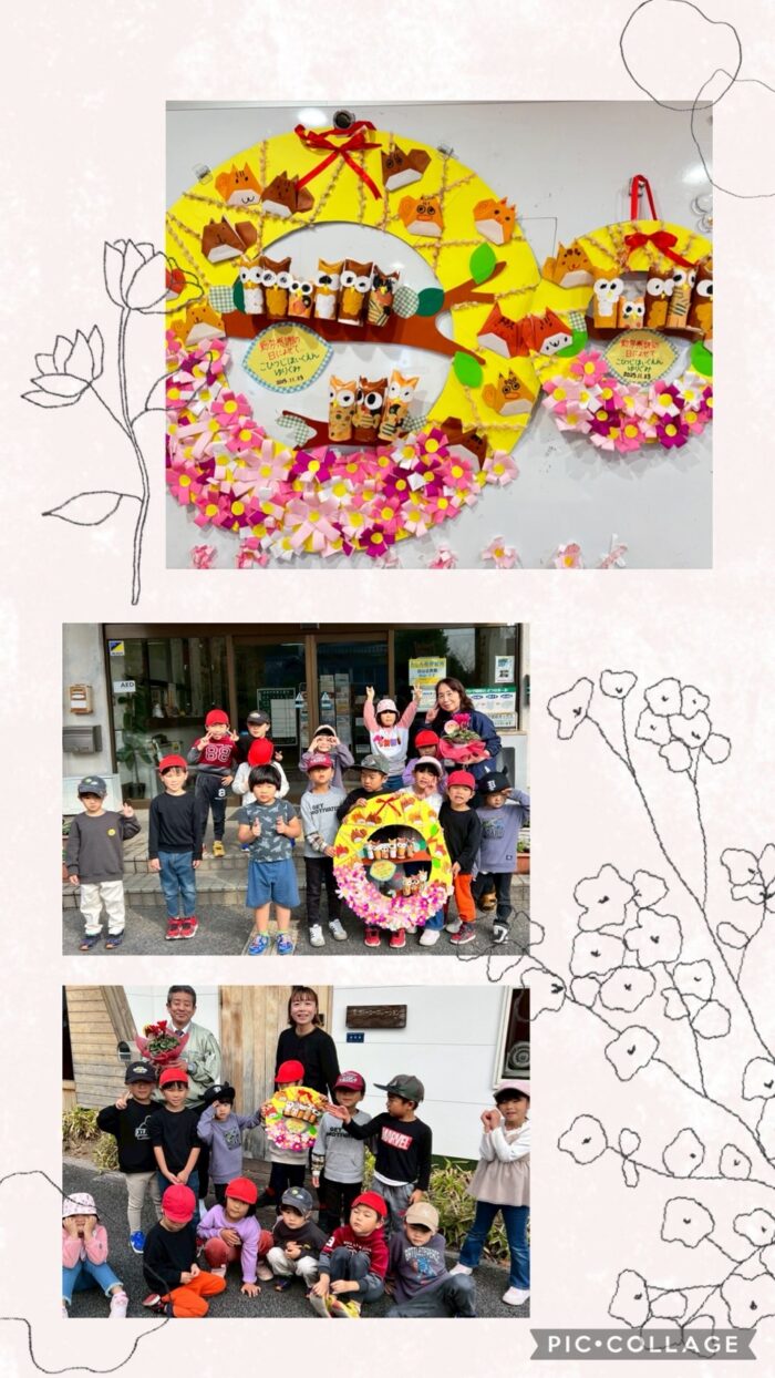 今日のゆり組は、勤労感謝の日の訪問でいつもお世話になっている白山公民館とサトーコーポレーションに感謝の気持ちを伝えに行きました😃❤️ 手作りの壁面飾りとお花を渡しましたよ★🦉🐿️