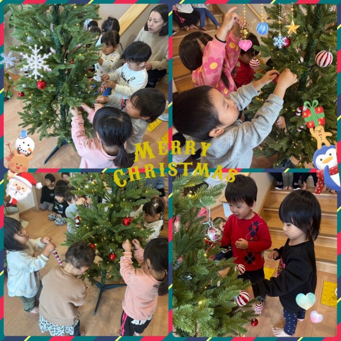 うめぐみさんとすみれぐみさんでクリスマスツリーの飾りつけをしました‼️