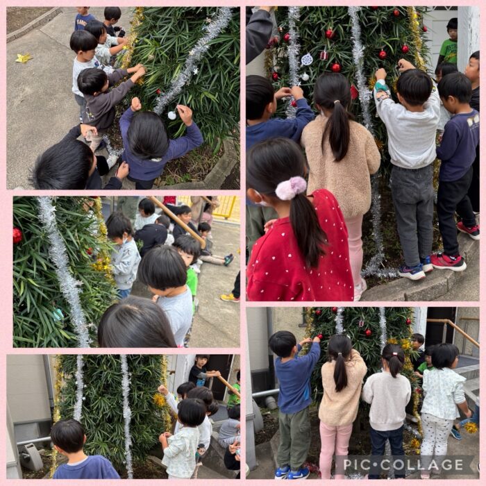 ゆりぐみさんは教会前の木にクリスマスの飾り付けをしました✨