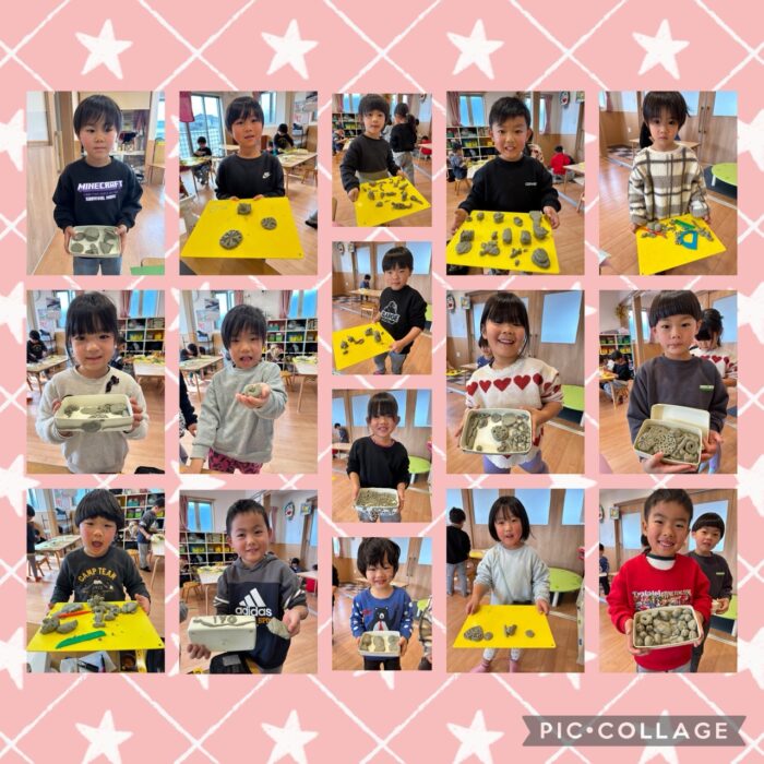 今日は粘土で遊びました😊それぞれが考えながら、好きなものを作っていました。できたらハイポーズ✌️