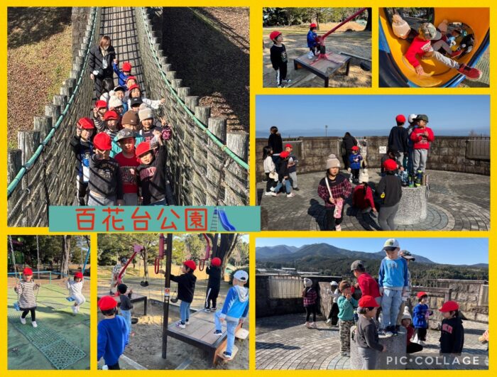 少し足を伸ばして百花台公園にも行きました🚗遊具で遊んで橋を渡って、お城にも登ってみんなで楽しみました😋