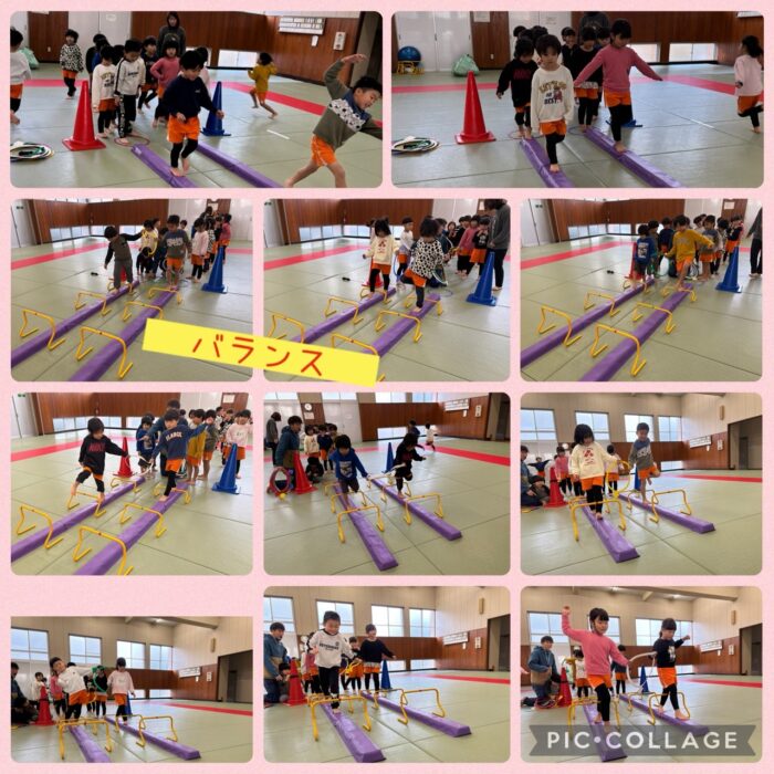 スポキッズではバランスをしました。平均台を渡りながらハードルを越える、、、なかなかバランスが上手なゆりさんです。