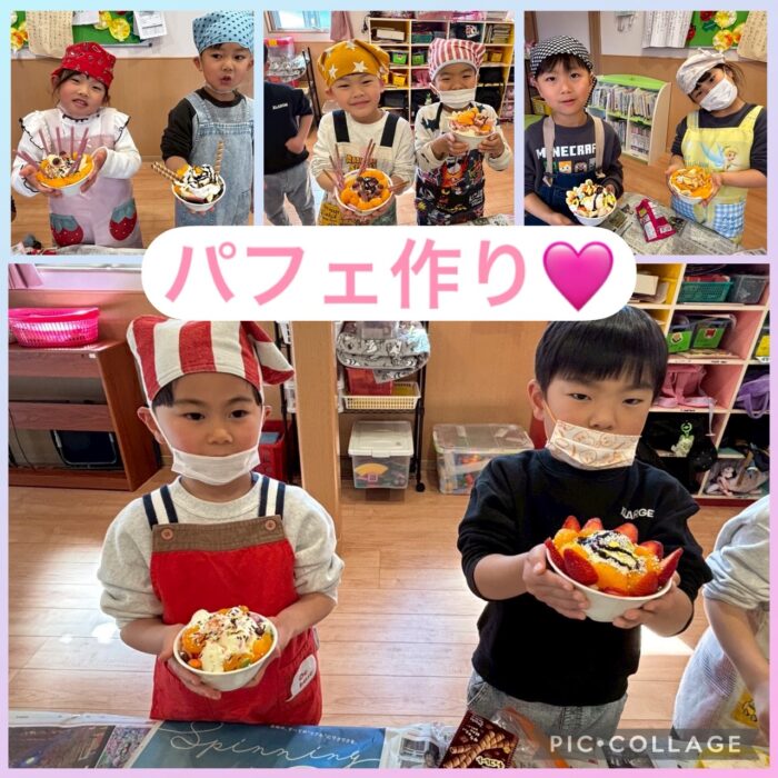 パフェ作りは好きなトッピングを持って来てそれぞれ素敵な美味しそうなパフェができました😋