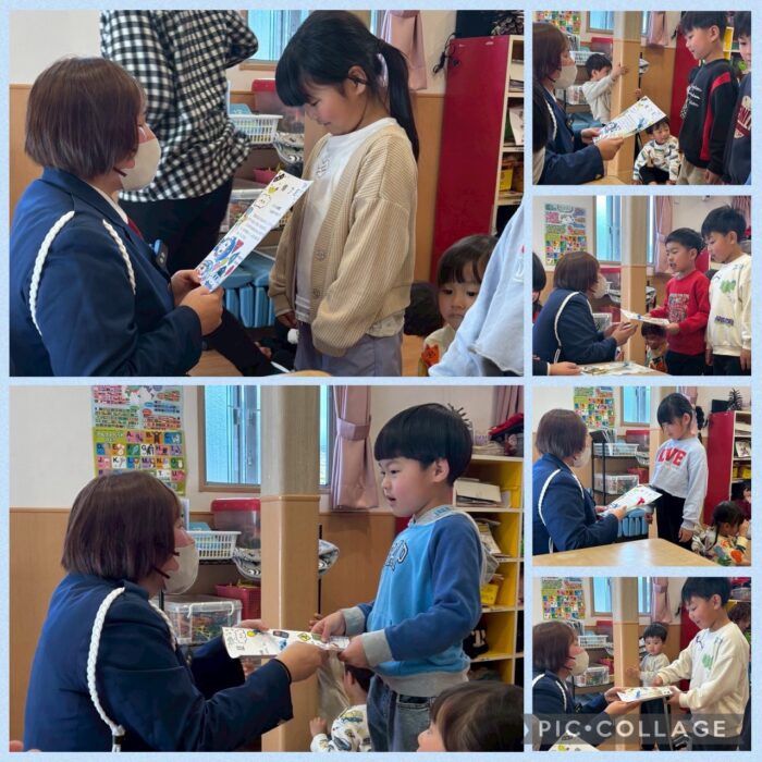 交通安全教室ではみどり組さんは修了証をもらいました👍