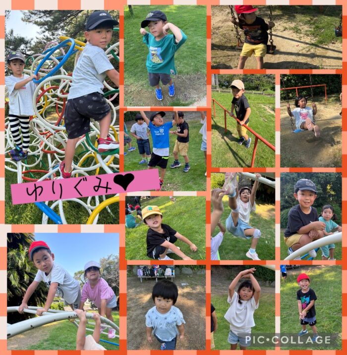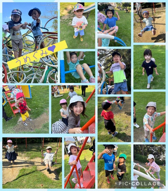 たーくさん遊びましたよ。鬼ごっこをしたり、ジャングルジム、太鼓橋などなど…ゆり組がうめ組のブランコを押してやったりと微笑ましい光景も見られました💕