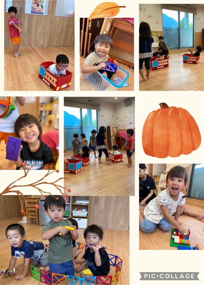 LEGOや磁石のおもちゃ、運動会の障害物で使った消防車🚒で遊びました😊