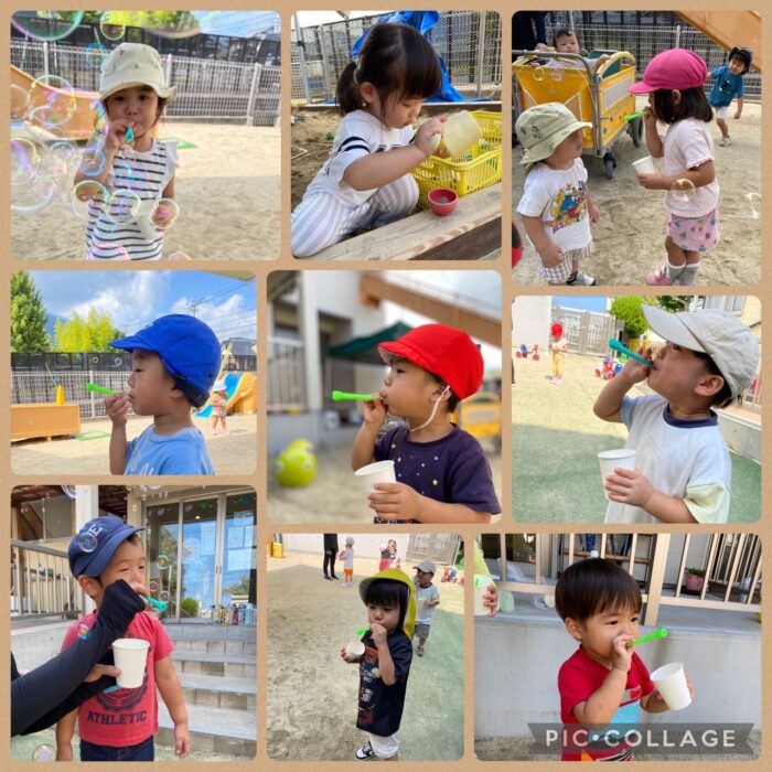 上手に吹いて、シャボン玉をたくさん作ってました🫧